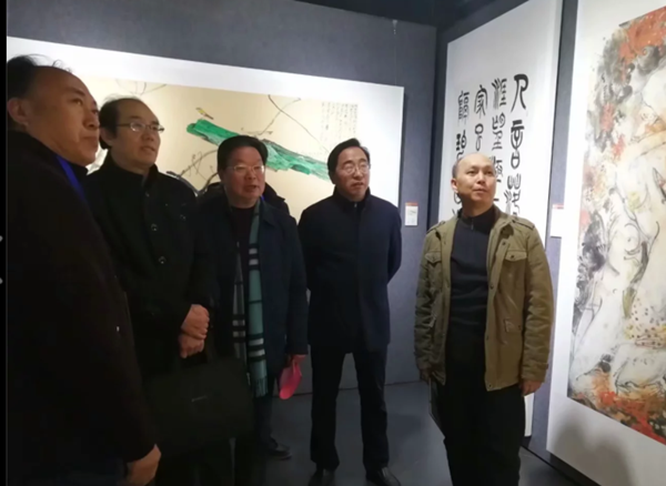 在内江市人大常委会副主任、内江市文学艺术界联合会党组书记、主席秦金保宣布展览开幕后,两地在场的相关领导和嘉宾们分别到展厅进行了观展。