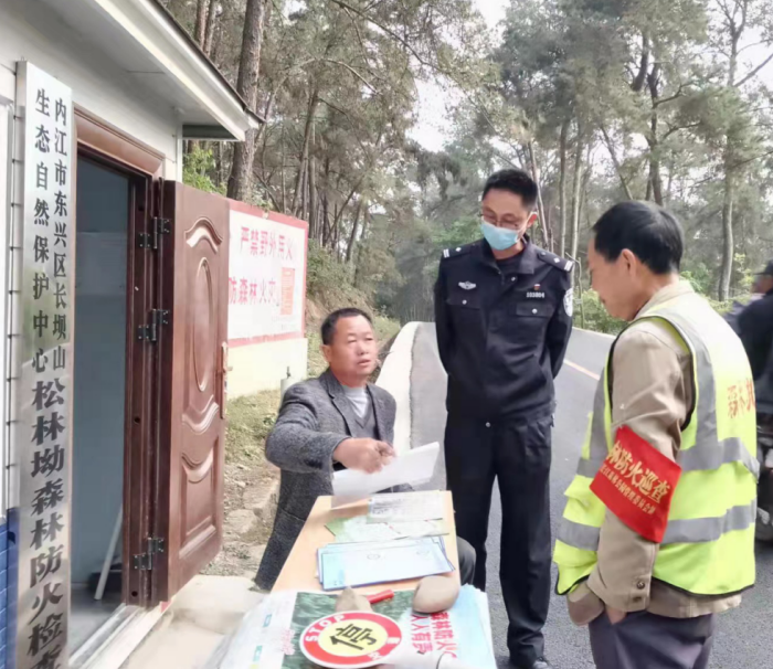 近日,内江市东兴区森警大队全体成员深入长江森林公园,开展森林火险隐患排查和宣传,并检查各项防火工作。一是民警与各个卡点人员进行了深入的交流,了解工作情况,并检查了卡点内的通讯设备,确保随时保持通讯畅通。二是在人口集散地、林区入口处积极教育引导广大人民群众移风易俗,倡导支持使用鲜花、植树等文明环保的绿色祭祀方式来表达对先人的怀念之情。三是通过对人民群众广泛宣传《森林法》、《四川省森林防火条例》等法规,做到未雨绸缪。四是要求各乡镇督促森林防火员每天进行巡山,加大对公墓、连片坟周边等关键部位可燃物的清理力度,确保清理彻底。五要广泛开展宣传教育,充分利用流动车广播、悬挂横幅等多种方式做好宣传,实现人人皆知、群防群治。六是针对村民密集、森林火灾隐患较大的地方要建立应急预案,确保一旦有森林火灾发生,能迅速组织群众撤离。