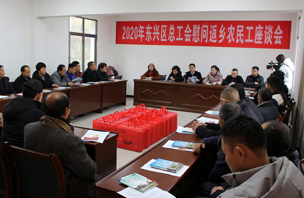 当天是二十四节气中的小寒。内江市东兴区总工会带着深情和温暖,为该区椑木镇四方碑村30名回家过年的农民工送去了饱含党和政府关怀的“过年礼包”。据悉,春节前夕,东兴区总工会大力实施农民工“回家工程”,通过开辟农民工回家专列、召开农民工座谈会、举办农民工维权知识讲座、开通农民工回乡创业绿色通道、发放“过年礼包”等形式,让农民工温暖回家、幸福过年。