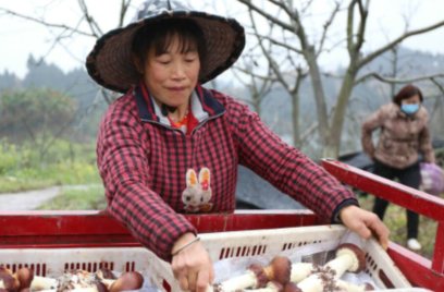 3月2日,四川内江喜迎春雨。走进位于内江市东兴区双桥镇牌坊村的惠耀种植专合社核桃种植基地,只见400余亩核桃树苗只剩树枝。林间空地上,工人们正头戴草帽,揭开黑色塑料薄膜,小心翼翼地采收刚冒出头的大球盖菇。红褐色的菌帽,白色的菌杆,显得十分诱人。