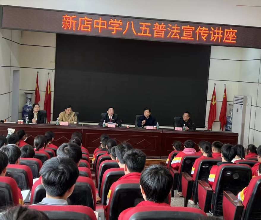 本次宣讲活动是新店中学深入实施“八五”普法,扎实开展普法宣传的重要举措之一。据悉,为全面深化法治宣传教育,新店中学以“每月一主题”开展师生法治宣传教育,坚持教职工会前学法制度、落实了法治课程进课堂、开展了“学宪法讲宪法”系列活动等,不断以法治建设助推教育高质量发展。(吴琳 黄文利)