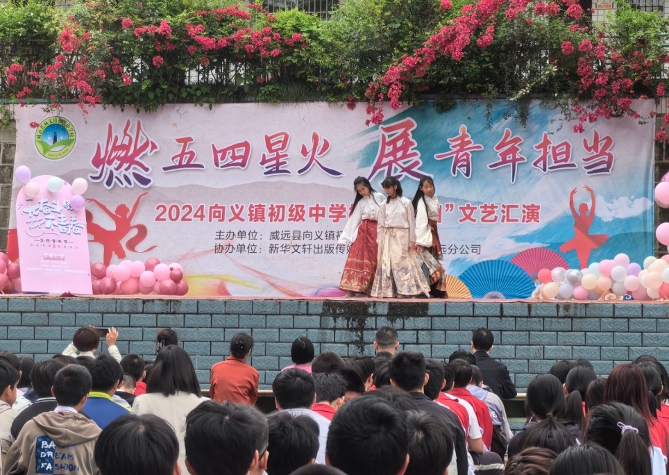 为弘扬“五四”精神,提升青年学生的文化艺术素养,2024年4月30日上午,威远县向义镇初级中学校成功举办了“燃五四薪火,展青年担当”艺术节展演活动。