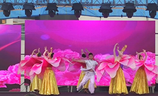 一支花瓣姑娘表演的舞蹈《春海》拉开了文艺表演序幕,接下来,精彩节目连续不断,歌曲《咱老百姓》唱出了劳动人民的朴实勤劳;双人舞《蒙古》、非洲鼓《丽江三部曲》让观众们感受到欢快、幸福的的节日氛围;舞蹈《今夜无眠》《感到幸福就拍拍手》《雨中花》让人们体会到幸福生活的来之不易,应倍感珍惜;魔术表演给观众带来了难以想象的视觉体验。台上尽情表演,台下掌声不断,表达了商圈民众“敬劳动、享美好”的心声。