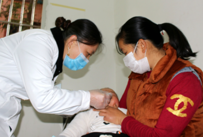 3月7日,在内江市东兴区田家中心卫生院预防接种门诊,家长们抱着孩子在约定的时间进行预防接种。