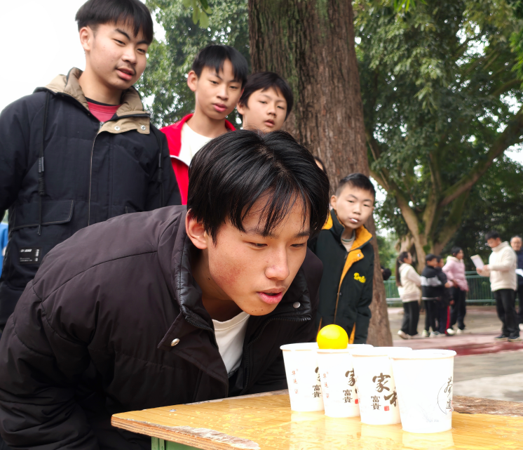 游园活动以班级为单位,共设有“双腿夹球行走”“定点投篮球”“夹弹珠”“吹乒乓球”“镜中投球”“踢毽子”等六个趣味游戏项目。组委会特别准备了1200张奖券,同学们通过参与游戏赢取奖券,并可现场兑换各类精美礼品。活动中,同学们全情投入、配合默契,在欢笑声中挑战自我,于协作间增进情谊,现场秩序井然,场面热闹欢腾。