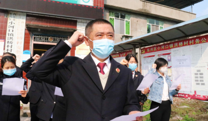 4月1日,内江市东兴区检察院组织决战决胜脱贫攻坚集体宣誓和帮扶责任人签名承诺仪式,该院党组书记、代理检察长凌德宪先后带队到洪桥村、光明村和在院内主持了仪式并领誓。