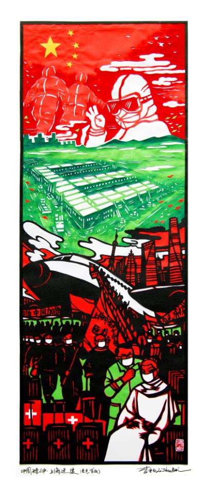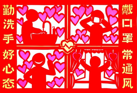 何球红 剪纸《防控疫情 从我做起》