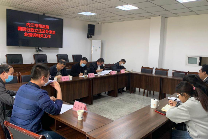 4月8日下午,四川省内江市司法局副局长吴新带队到东兴区司法局调研东兴区和市中区行政立法及外来企业投诉相关工作。调研座谈会在东兴区司法局召开,市中区司法局到会参加。