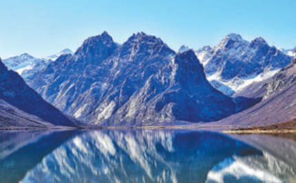 10月,深秋的暖阳将年保玉则镀上一层金色,湖水幽蓝静谧,如一颗硕大的蓝宝石,莲花般的雪山倒影泊在湖面。