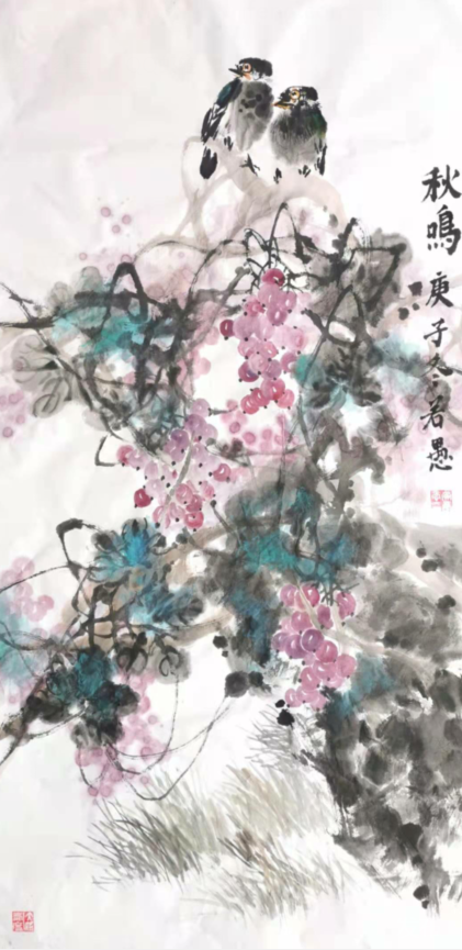 黄若愚教授的写意花鸟画,重内涵,富新意,造型生动,笔墨娴熟,技法全面,有自己独特的面貌和个性。它不离传统而不囿于传统;时有新变却又不是为新而新。从其他画种汲取养料,包括借用某些绘画语言,提高中国画笔墨自身的发展和表现,他的画不拘一格,又是自一家。
