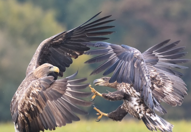 两老鹰为争夺食物大打出手 上演精彩"空战"